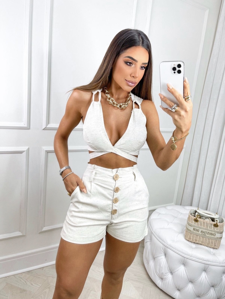 Conjunto linho com elastano com bojo (tamanho único)