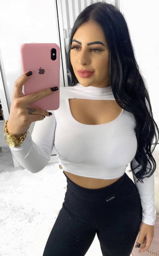 Cropped manga longa com bojo